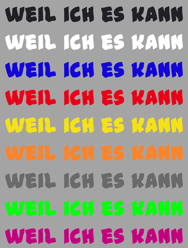 Größe: ca. 18 x 1,5cmIn zehn verschiedenen Farben zur Auswahl.Der Aufkleber ist konturgeschnitten (Schriftzug freistehend ohne störenden Hintergrund)