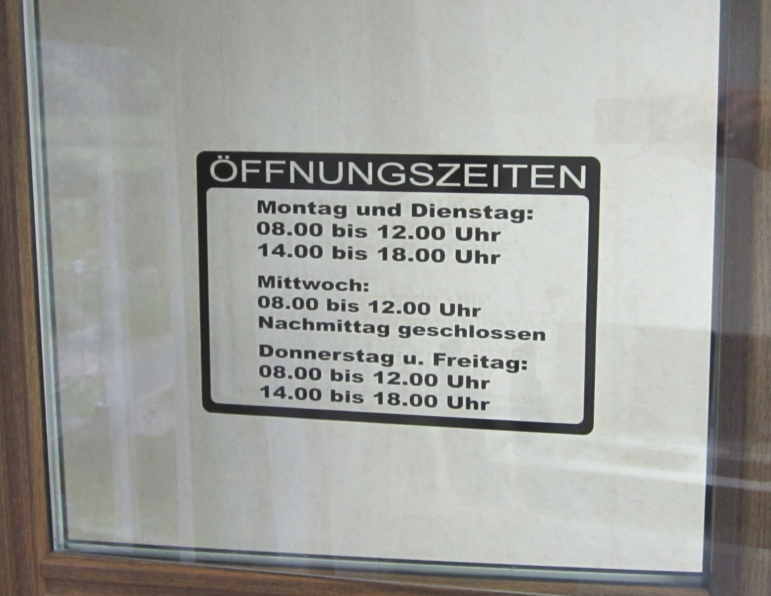 Es sind maximal neun Zeilen mit bis zu 22 Zeichen (inkl. Leer- u. Satzzeichen) möglich. Der Schriftzug "Öffnungszeiten" sowie der Rahmen sind fest vordefiniert.