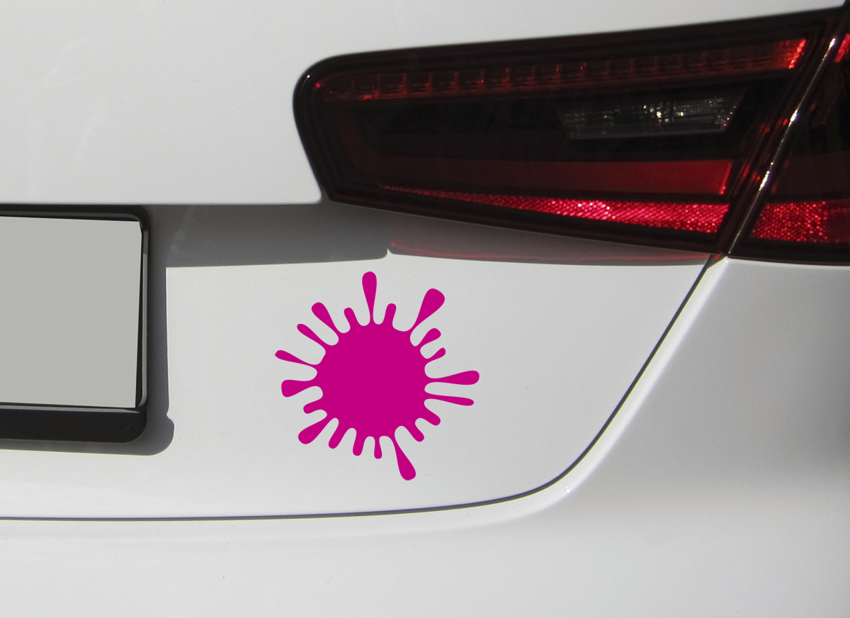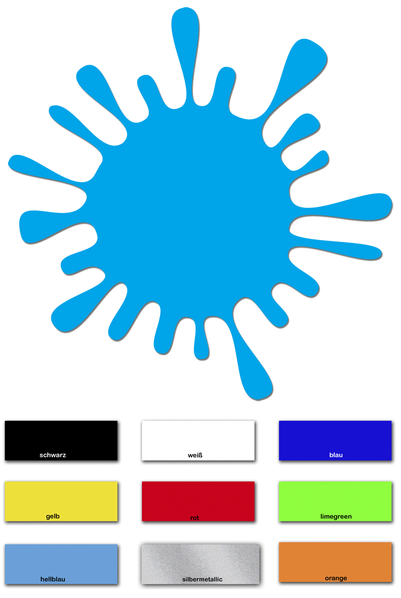 Durchmesser ca. 10cm In zehn verschiedenen Farben zur Auswahl. Der Aufkleber ist konturgeschnitten (Klecks freistehend ohne störenden Hintergrund)